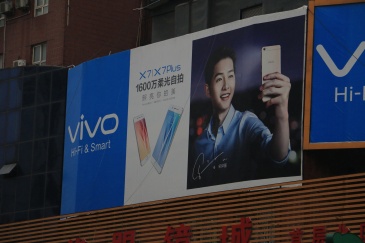 民族路与南大街交汇处新华服装城楼顶大牌